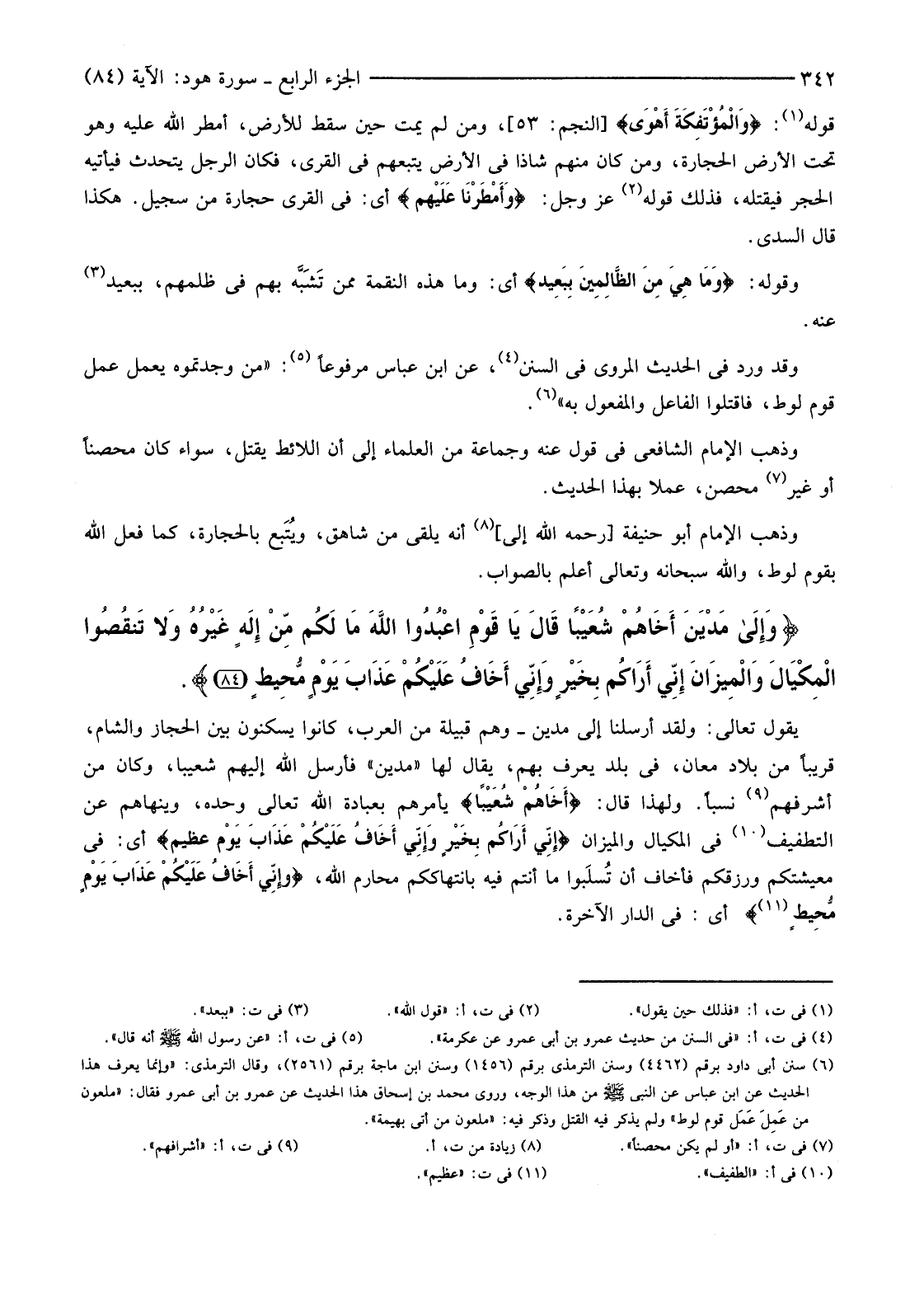 {وَإِلَى مَدْيَنَ أَخَاهُمْ شُعَيْبًا قَالَ يَا قَوْمِ اعْبُدُوا اللَّهَ مَا لَكُمْ مِنْ إِلَهٍ غَيْرُهُ وَلا تَنْقُصُوا الْمِكْيَالَ وَالْمِيزَانَ إِنِّي أَرَاكُمْ بِخَيْرٍ وَإِنِّي أَخَافُ عَلَيْكُمْ عَذَابَ يَوْمٍ مُحِيطٍ (84) }