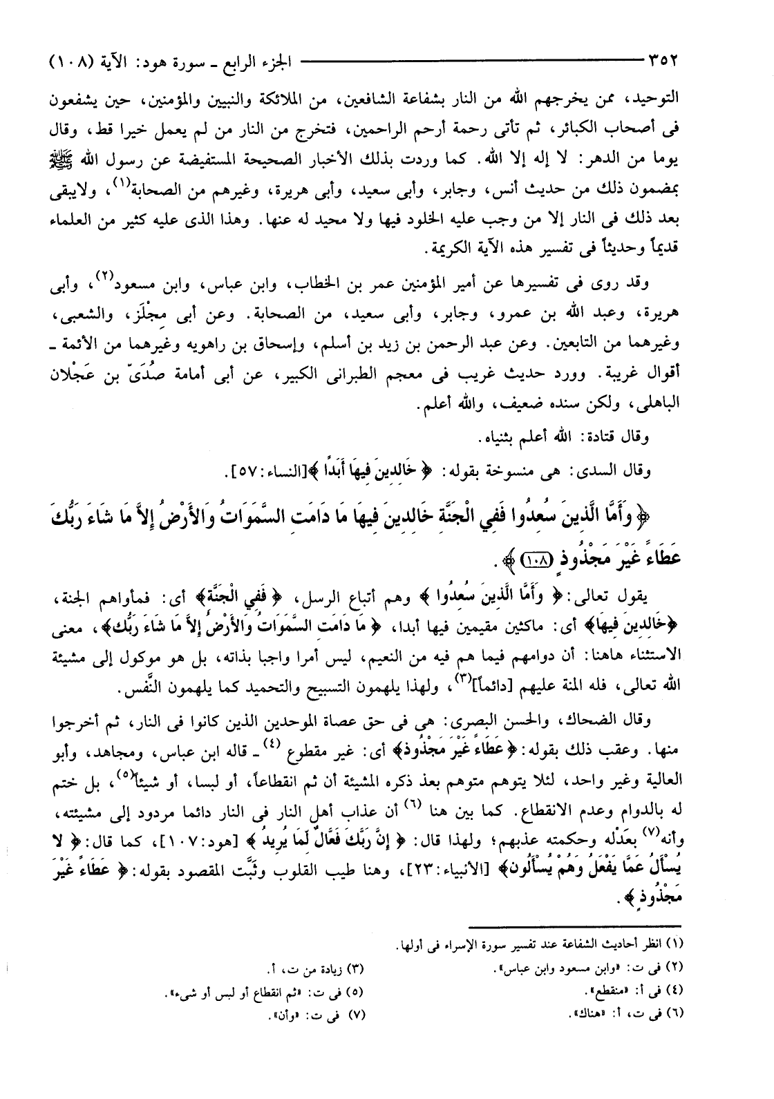 {وَأَمَّا الَّذِينَ سُعِدُوا فَفِي الْجَنَّةِ خَالِدِينَ فِيهَا مَا دَامَتِ السَّمَاوَاتُ وَالأرْضُ إِلا مَا شَاءَ رَبُّكَ عَطَاءً غَيْرَ مَجْذُوذٍ (108) }
