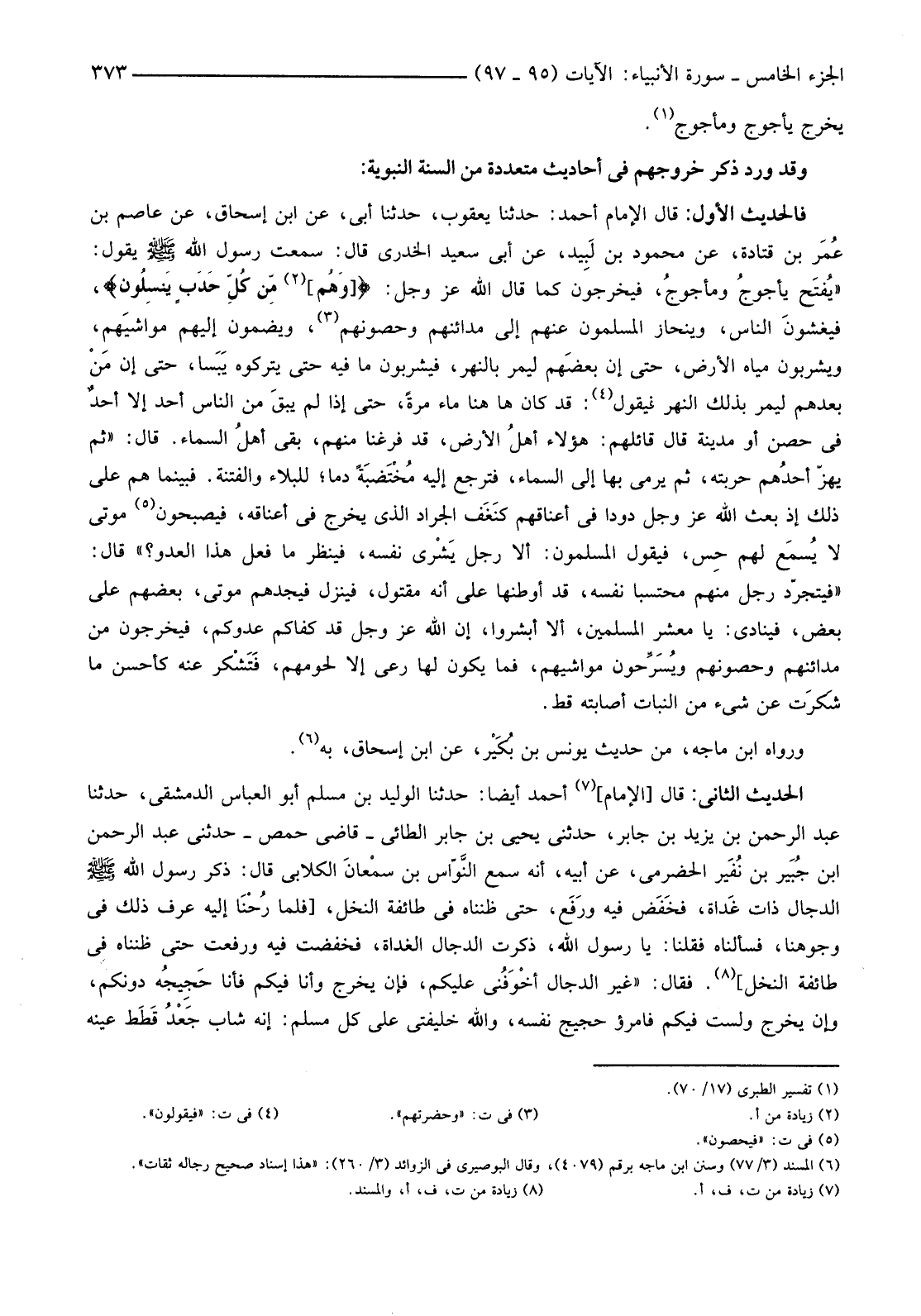 يَخْرُجُ يَأْجُوجُ وَمَأْجُوجُ (1) .