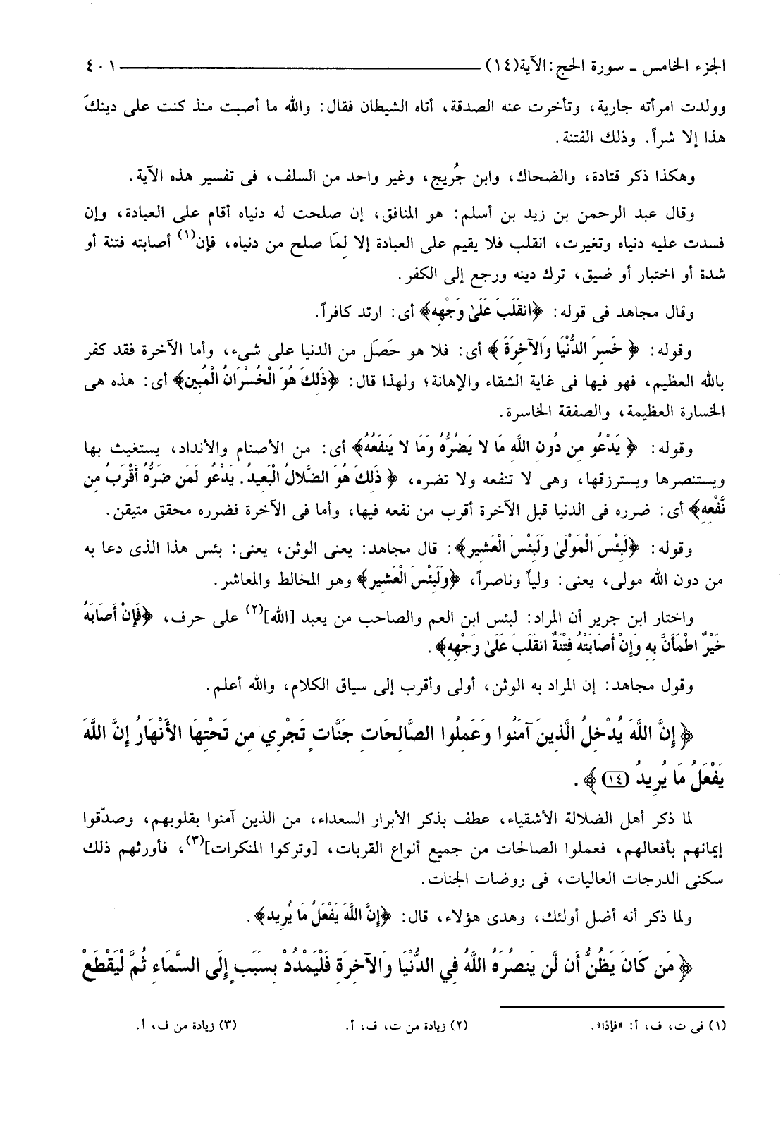 {إِنَّ اللَّهَ يُدْخِلُ الَّذِينَ آمَنُوا وَعَمِلُوا الصَّالِحَاتِ جَنَّاتٍ تَجْرِي مِنْ تَحْتِهَا الأنْهَارُ إِنَّ اللَّهَ يَفْعَلُ مَا يُرِيدُ (14) } .