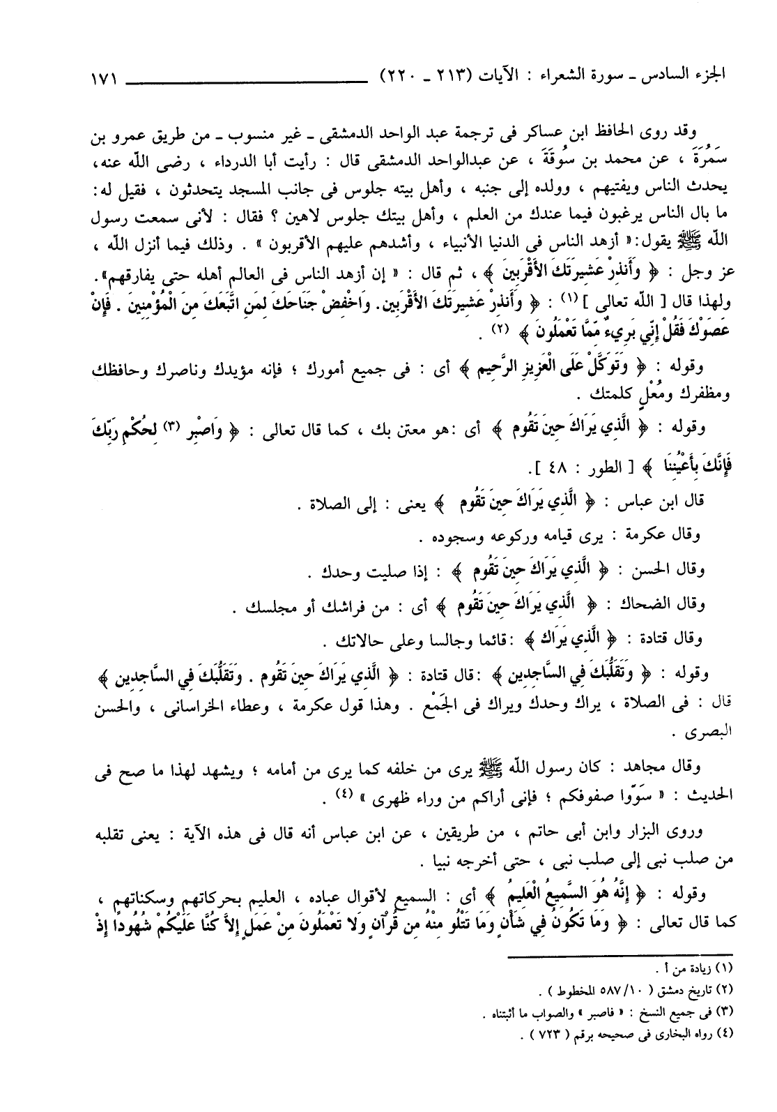قَالَ ابْنُ عَبَّاسٍ: {الَّذِي يَرَاكَ حِينَ تَقُومُ} يَعْنِي: إِلَى الصَّلَاةِ.