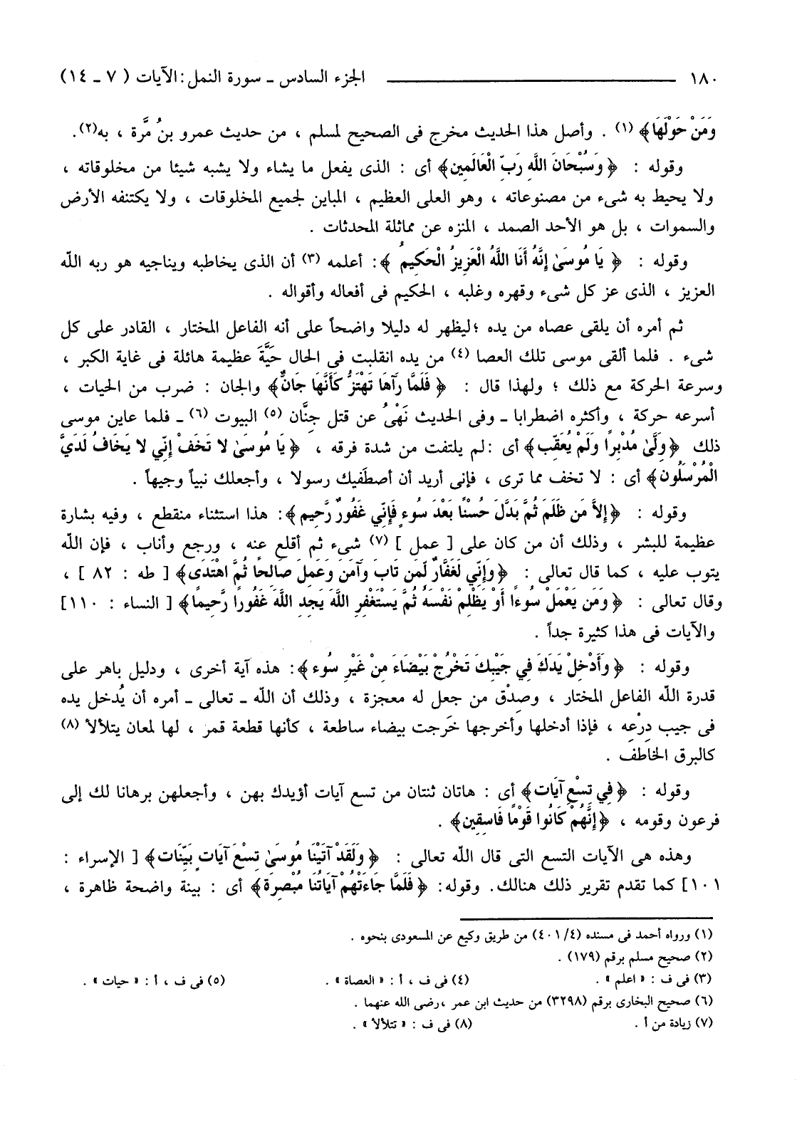 وَقَوْلُهُ: {يَا مُوسَى إِنَّهُ أَنَا اللَّهُ الْعَزِيزُ الْحَكِيمُ} أَعْلَمَهُ (2) أَنَّ الَّذِي يُخَاطِبُهُ وَيُنَاجِيهِ هُوَ رَبُّهُ اللَّهُ الْعَزِيزُ، الَّذِي عَزَّ كُلَّ شَيْءٍ وَقَهَرَهُ وَغَلَبَهُ، الْحَكِيمُ فِي أَفْعَالِهِ وَأَقْوَالِهِ.