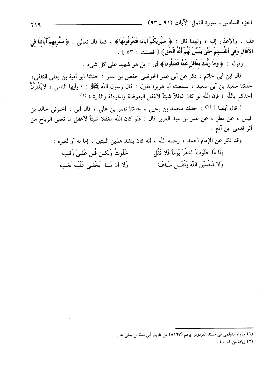وَلا تَحْسَبَن اللَّهَ يَغْفُل سَاعَةً ... وَلا أَنَّ مَا يَخْفى عَلَيْه يَغيب ...