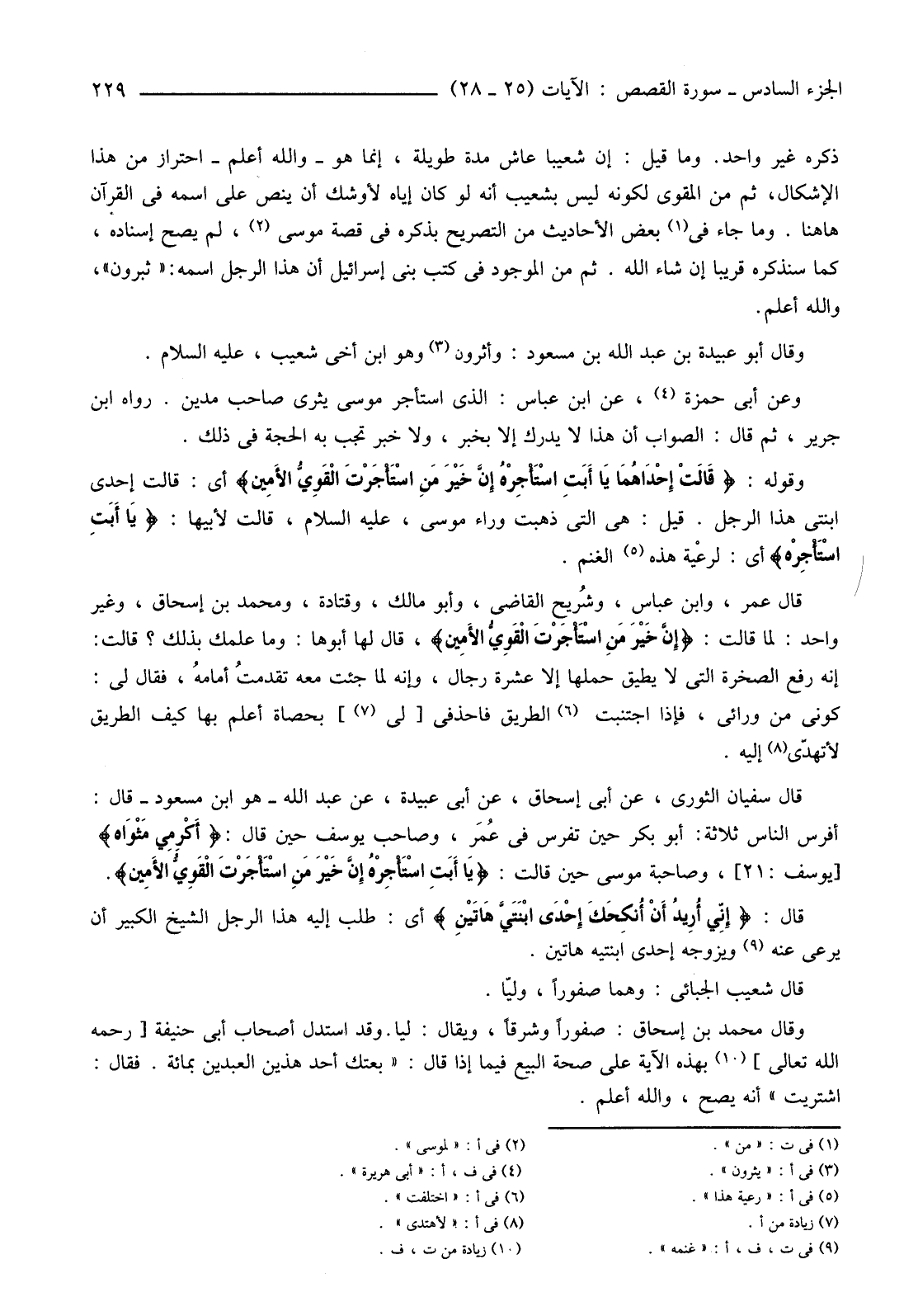 وَعَنْ أَبِي حَمْزَةَ (4) عَنِ ابْنِ عَبَّاسٍ: الَّذِي اسْتَأْجَرَ مُوسَى يَثْرَى صَاحِبُ مَدْيَنَ. رَوَاهُ ابْنُ جَرِيرٍ، ثُمَّ قَالَ: الصَّوَابُ أَنَّ هَذَا لَا يُدْرَكُ إِلَّا بِخَبَرٍ، وَلَا خَبَرَ تَجِبُ بِهِ الْحُجَّةُ فِي ذَلِكَ.