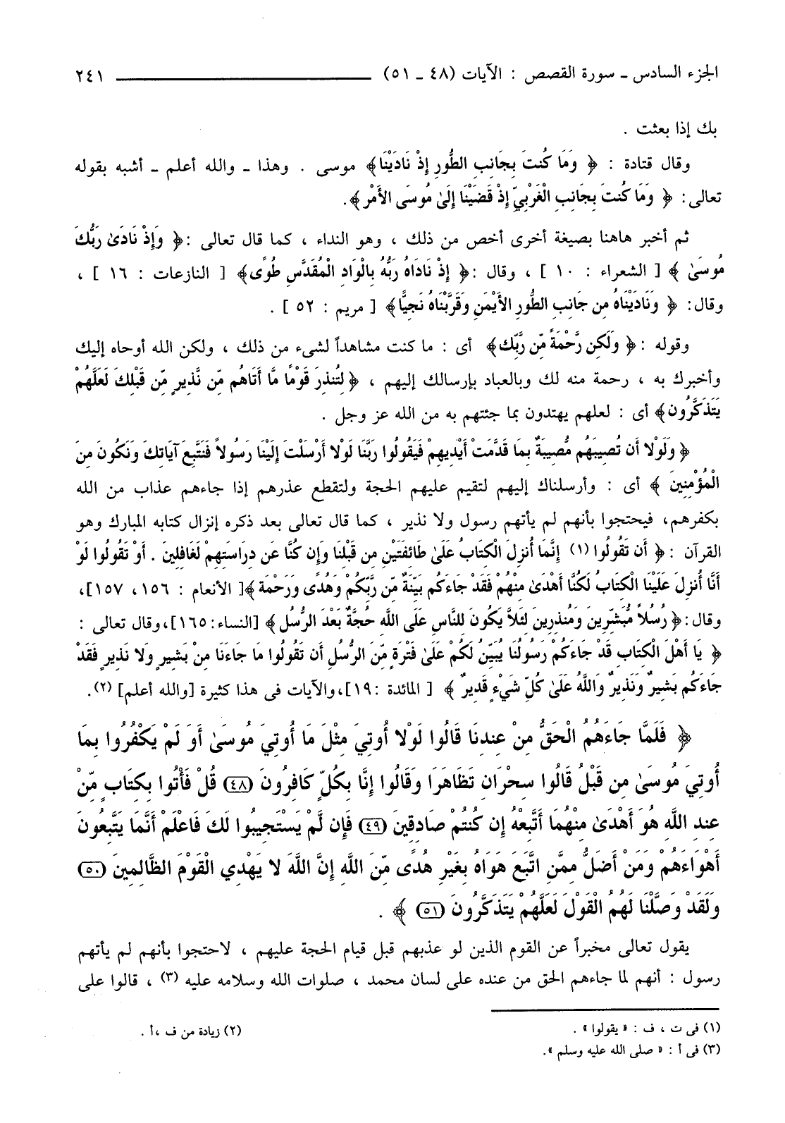{فَلَمَّا جَاءَهُمُ الْحَقُّ مِنْ عِنْدِنَا قَالُوا لَوْلا أُوتِيَ مِثْلَ مَا أُوتِيَ مُوسَى أَوَلَمْ يَكْفُرُوا بِمَا أُوتِيَ مُوسَى مِنْ قَبْلُ قَالُوا سِحْرَانِ تَظَاهَرَا وَقَالُوا إِنَّا بِكُلٍّ كَافِرُونَ (48) قُلْ فَأْتُوا بِكِتَابٍ مِنْ عِنْدِ اللَّهِ هُوَ أَهْدَى مِنْهُمَا أَتَّبِعْهُ إِنْ كُنْتُمْ صَادِقِينَ (49) فَإِنْ لَمْ يَسْتَجِيبُوا لَكَ فَاعْلَمْ أَنَّمَا يَتَّبِعُونَ أَهْوَاءَهُمْ وَمَنْ أَضَلُّ مِمَّنَ اتَّبَعَ هَوَاهُ بِغَيْرِ هُدًى مِنَ اللَّهِ إِنَّ اللَّهَ لا يَهْدِي الْقَوْمَ الظَّالِمِينَ (50) }