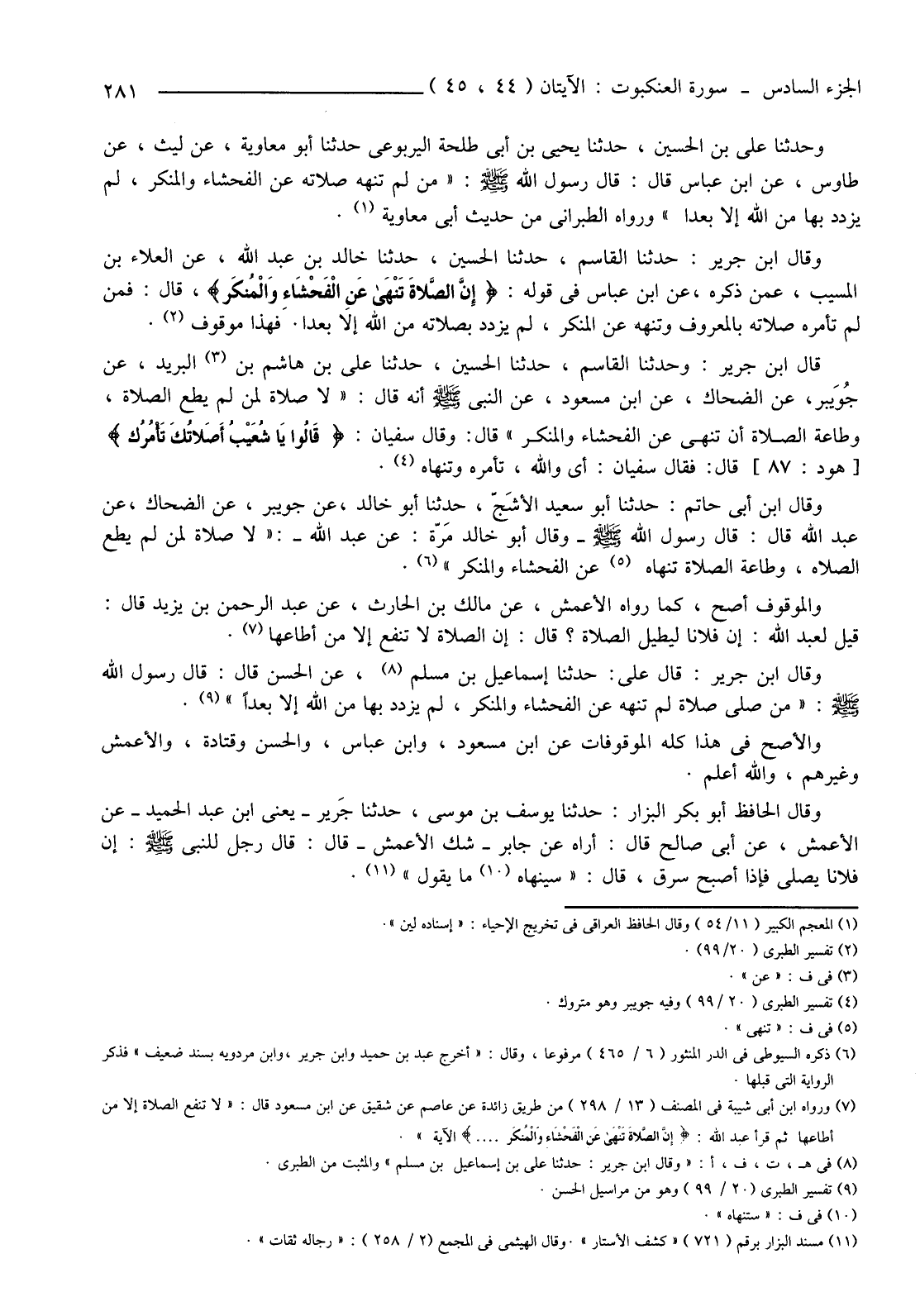 (7) ورواه ابن أبي شيبة في المصنف (13/298) من طريق زائدة عن عَاصِمٌ عَنْ شَقِيقٍ عَنِ ابْنِ مَسْعُودٍ قَالَ: "لا تنفع الصلاة إلا من أطاعها ثم قرأ عبد اللَّهِ: (إِنَّ الصَّلَاةَ تَنْهَى عَنِ الْفَحْشَاءِ وَالْمُنْكَرِ ... ) الآية".