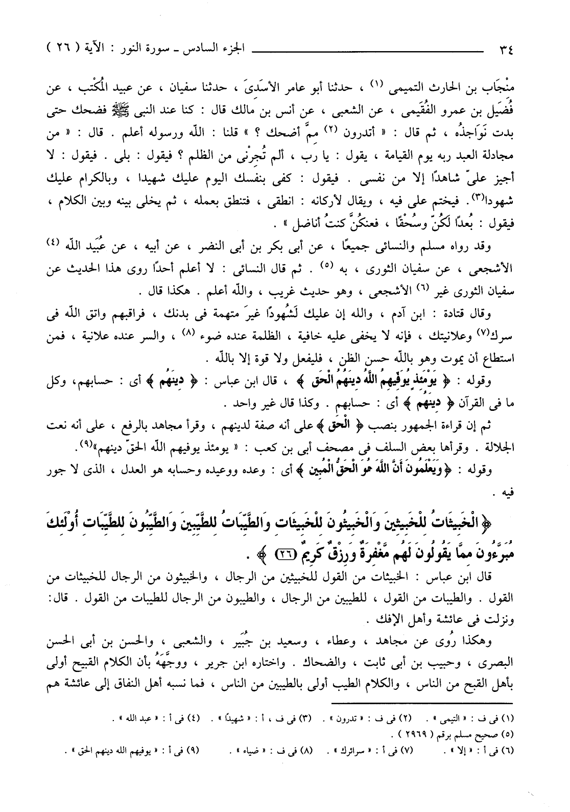 وَقَوْلُهُ: {يَوْمَئِذٍ يُوَفِّيهِمُ اللَّهُ دِينَهُمُ الْحَقَّ} قَالَ ابْنُ عَبَّاسٍ: {دِينَهُمُ} أَيْ: حِسَابَهُمْ، وَكُلُّ مَا فِي الْقُرْآنِ {دِينَهُمُ} أَيْ: حِسَابَهُمْ. وَكَذَا قَالَ غَيْرُ وَاحِدٍ.