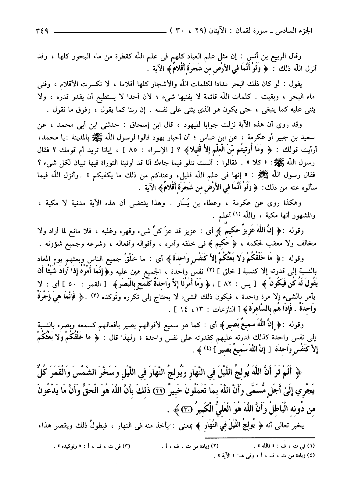 {أَلَمْ تَرَ أَنَّ اللَّهَ يُولِجُ اللَّيْلَ فِي النَّهَارِ وَيُولِجُ النَّهَارَ فِي اللَّيْلِ وَسَخَّرَ الشَّمْسَ وَالْقَمَرَ كُلٌّ يَجْرِي إِلَى أَجَلٍ مُسَمًّى وَأَنَّ اللَّهَ بِمَا تَعْمَلُونَ خَبِيرٌ (29) ذَلِكَ بِأَنَّ اللَّهَ هُوَ الْحَقُّ وَأَنَّ مَا يَدْعُونَ مِنْ دُونِهِ الْبَاطِلُ وَأَنَّ اللَّهَ هُوَ الْعَلِيُّ الْكَبِيرُ (30) }