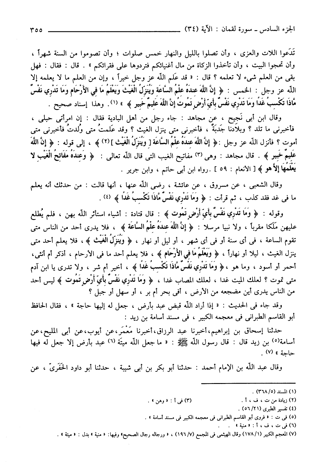 (5) في ت: "فروى أَبُو الْقَاسِمِ الطَّبَرَانِيُّ فِي مُعْجَمِهِ الْكَبِيرِ فِي مسند أسامة".