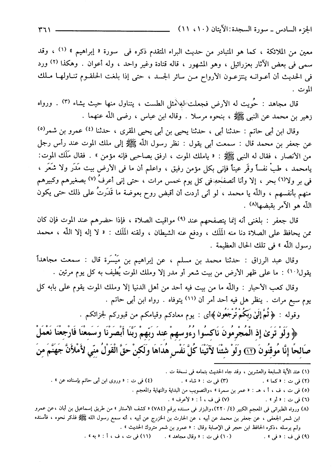 وَقَالَ كَعْبُ الْأَحْبَارِ: وَاللَّهِ مَا مِنْ بَيْتٍ فِيهِ أَحَدٌ مِنْ أَهْلِ الدُّنْيَا إِلَّا وَمَلَكُ الْمَوْتِ يَقُومُ عَلَى بَابِهِ كُلَّ يَوْمٍ سَبْعَ مَرَّاتٍ. يَنْظُرُ هَلْ فِيهِ أَحَدٌ أُمِرَ أَنْ (11) يَتَوَفَّاهُ. رَوَاهُ ابْنُ أَبِي حَاتِمٍ.