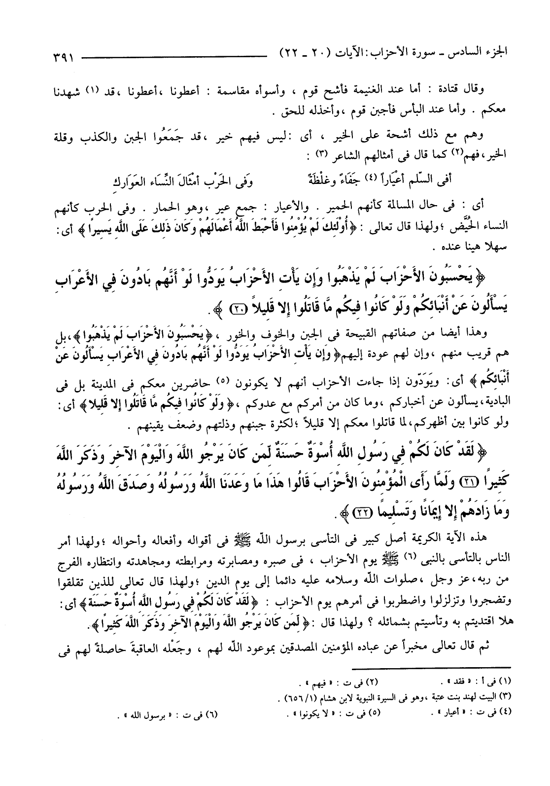 {لَقَدْ كَانَ لَكُمْ فِي رَسُولِ اللَّهِ أُسْوَةٌ حَسَنَةٌ لِمَنْ كَانَ يَرْجُو اللَّهَ وَالْيَوْمَ الآخِرَ وَذَكَرَ اللَّهَ كَثِيرًا (21) وَلَمَّا رَأَى الْمُؤْمِنُونَ الأحْزَابَ قَالُوا هَذَا مَا وَعَدَنَا اللَّهُ وَرَسُولُهُ وَصَدَقَ اللَّهُ وَرَسُولُهُ وَمَا زَادَهُمْ إِلا إِيمَانًا وَتَسْلِيمًا (22) } .