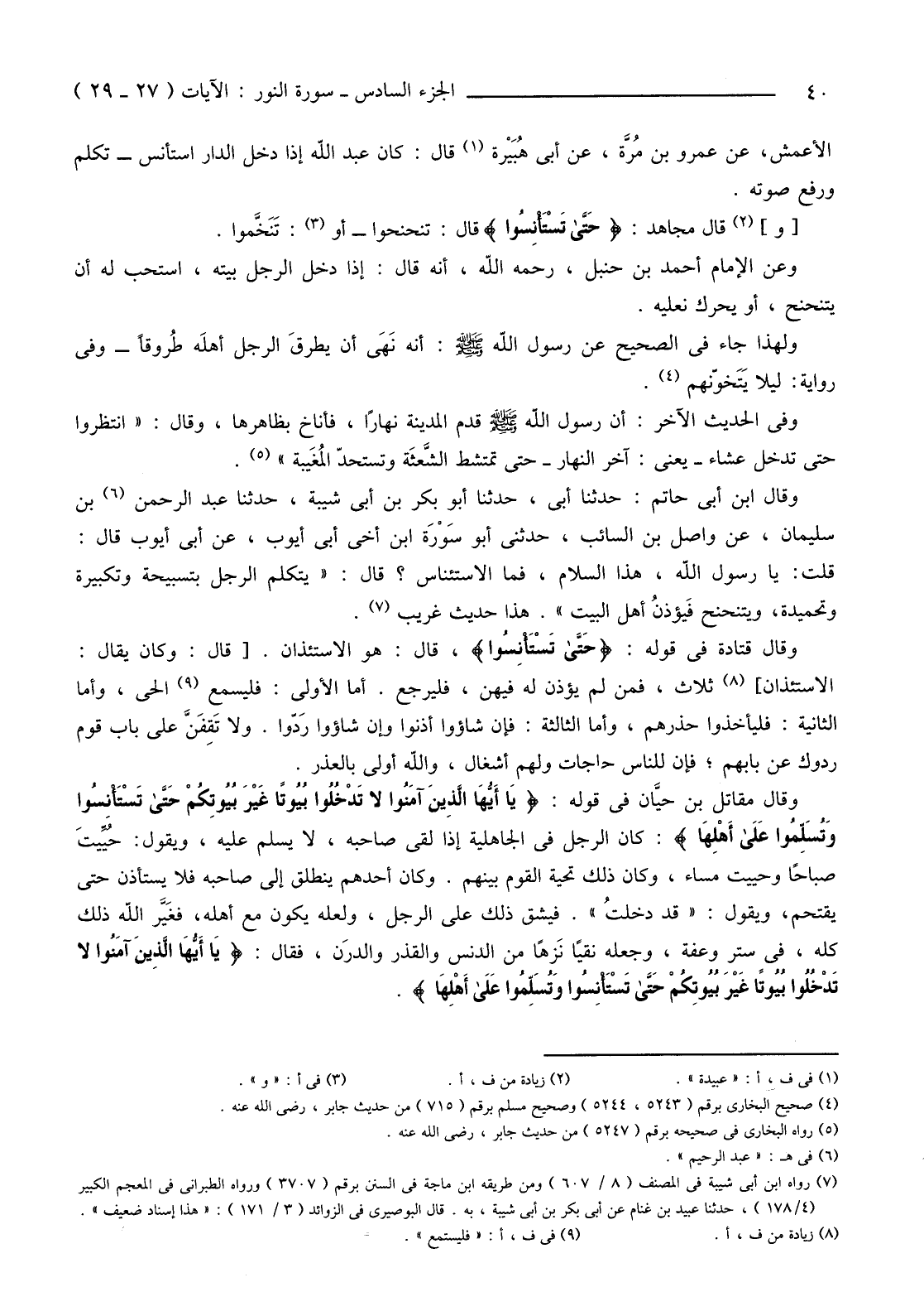 [وَ] (2) قَالَ مُجَاهِدٌ: {حَتَّى تَسْتَأْنِسُوا} قَالَ: تَنَحْنَحُوا -أَوْ (3) تَنَخَّموا.
