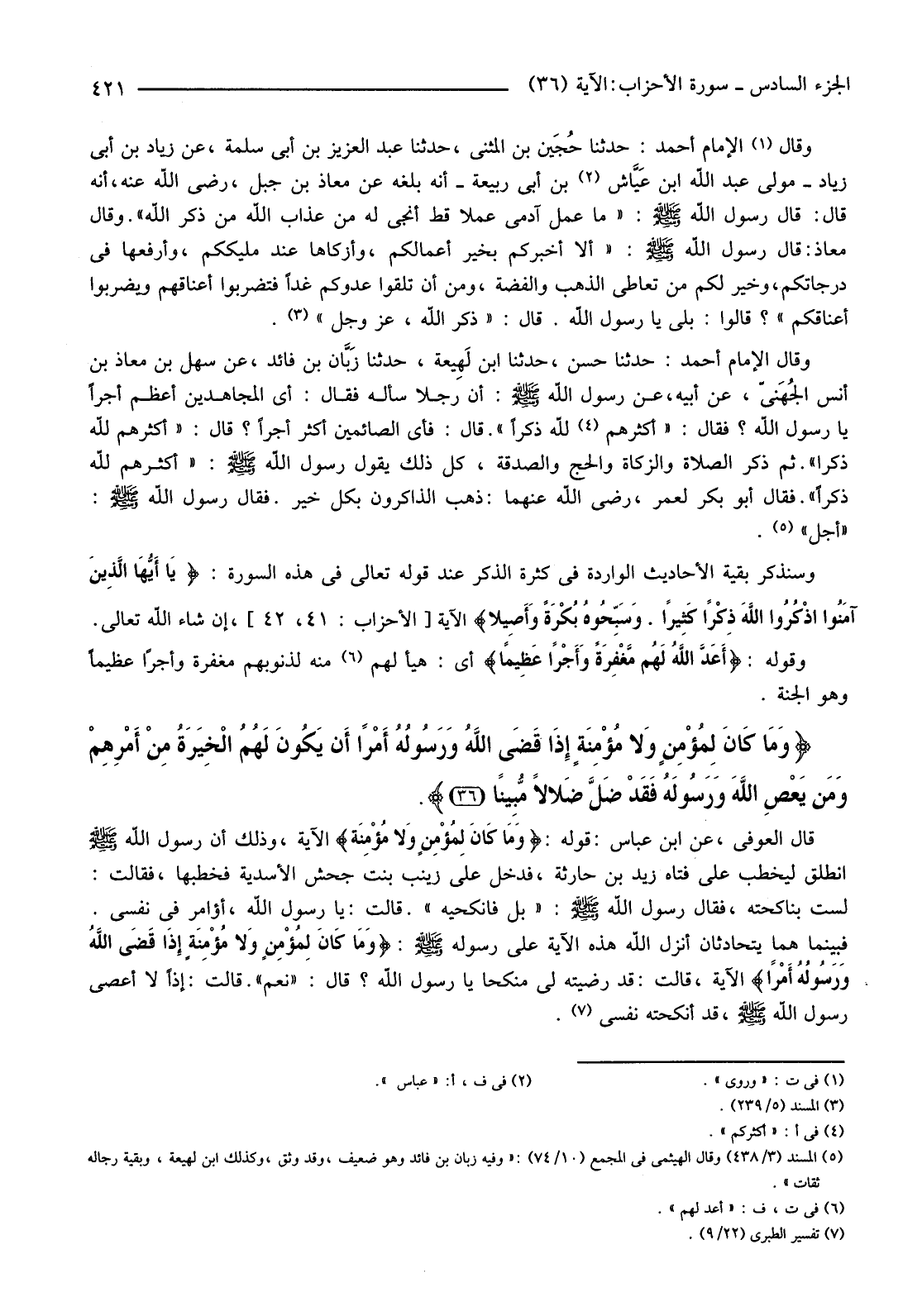 وَسَنَذْكُرُ بَقِيَّةَ الْأَحَادِيثِ الْوَارِدَةِ فِي كَثْرَةِ الذِّكْرِ عِنْدَ قَوْلِهِ تَعَالَى فِي هَذِهِ السُّورَةِ: {يَا أَيُّهَا الَّذِينَ آمَنُوا اذْكُرُوا اللَّهَ ذِكْرًا كَثِيرًا وَسَبِّحُوهُ بُكْرَةً وَأَصِيلا} الْآيَةَ [الْأَحْزَابِ:41، 42] ، إِنْ شَاءَ اللَّهُ تَعَالَى.