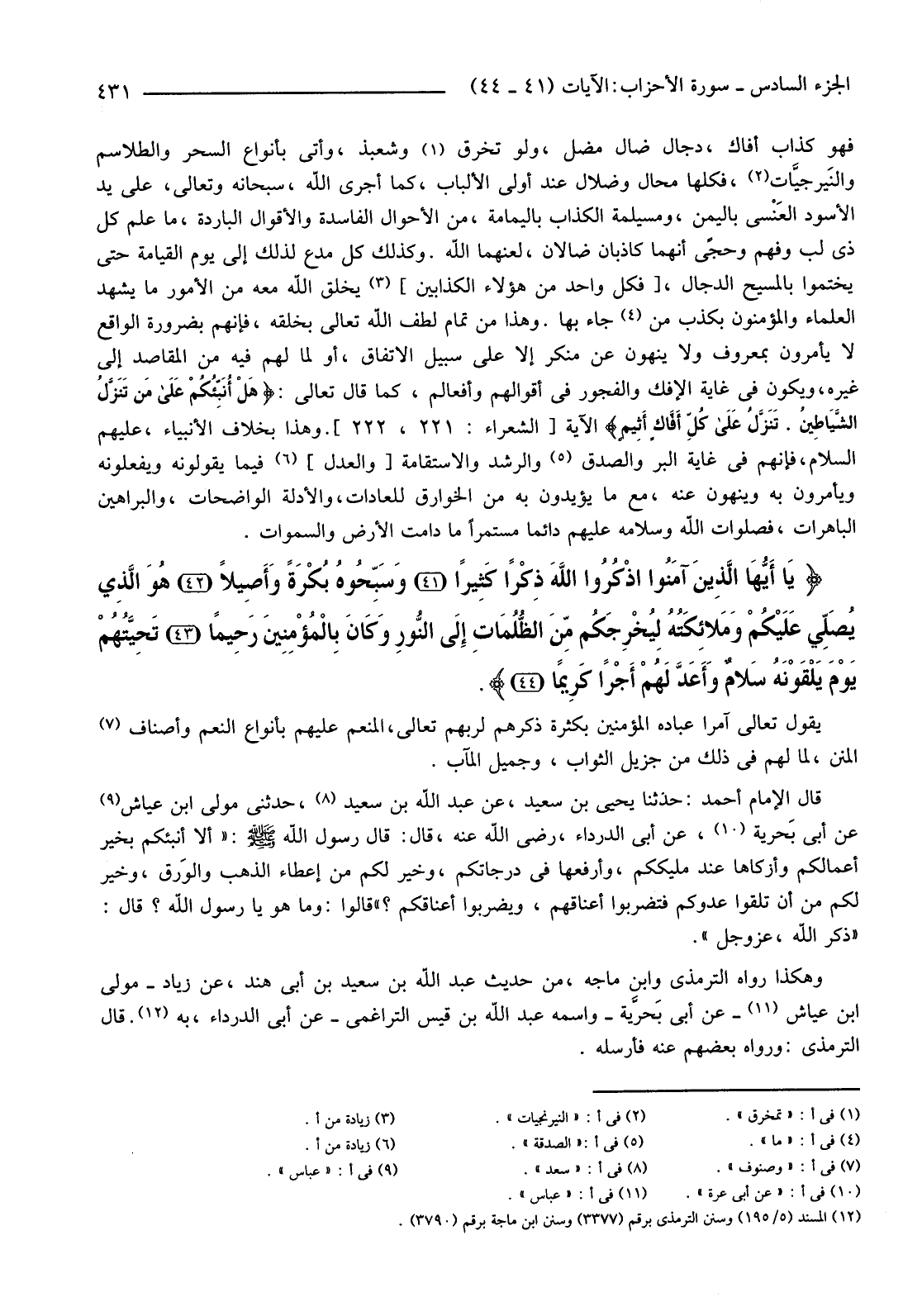 {يَا أَيُّهَا الَّذِينَ آمَنُوا اذْكُرُوا اللَّهَ ذِكْرًا كَثِيرًا (41) وَسَبِّحُوهُ بُكْرَةً وَأَصِيلا (42) هُوَ الَّذِي يُصَلِّي عَلَيْكُمْ وَمَلائِكَتُهُ لِيُخْرِجَكُمْ مِنَ الظُّلُمَاتِ إِلَى النُّورِ وَكَانَ بِالْمُؤْمِنِينَ رَحِيمًا (43) }