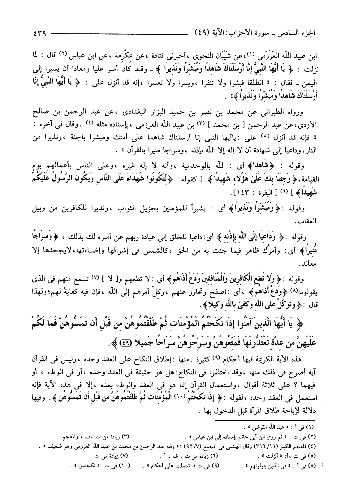 وَقَوْلُهُ: {وَدَاعِيًا إِلَى اللَّهِ بِإِذْنِهِ} أَيْ: دَاعِيًا لِلْخَلْقِ إِلَى عِبَادَةِ رَبِّهِمْ عَنْ أَمْرِهِ لَكَ بِذَلِكَ، {وَسِرَاجًا مُنِيرًا} أَيْ: وأمرُك ظَاهِرٌ فِيمَا جِئْتَ بِهِ مِنَ الْحَقِّ، كَالشَّمْسِ فِي إِشْرَاقِهَا وَإِضَاءَتِهَا، لَا يَجْحَدُهَا إِلَّا مُعَانِدٌ.
