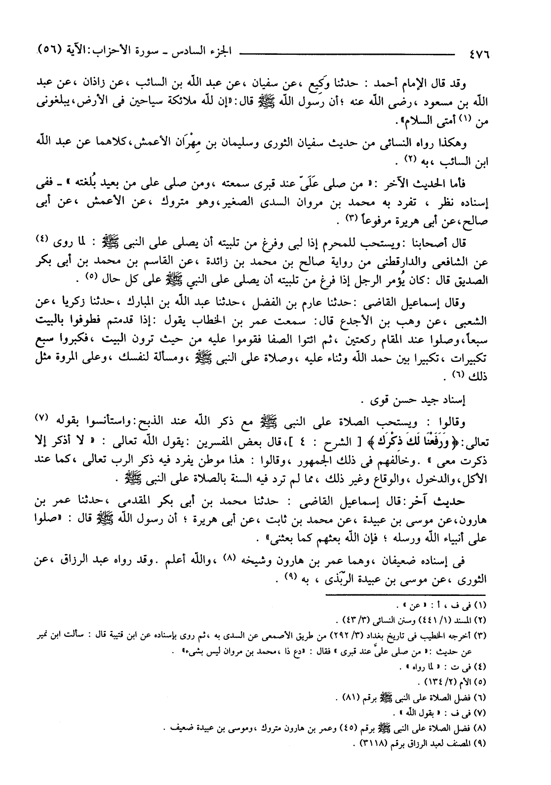 وَقَدْ قَالَ الْإِمَامُ أَحْمَدُ: حَدَّثَنَا وَكِيع، عَنْ سُفْيَانَ، عَنْ عَبْدِ اللَّهِ بْنِ السَّائِبِ، عَنْ زَاذَانَ، عَنْ عَبْدِ اللَّهِ بْنِ مَسْعُودٍ، رَضِيَ اللَّهُ عَنْهُ؛ أَنَّ رَسُولَ اللَّهِ صَلَّى اللَّهُ عَلَيْهِ وَسَلَّمَ قَالَ: "إِنَّ لِلَّهِ مَلَائِكَةً سَيَّاحِينَ فِي الْأَرْضِ، يُبَلِّغُونِي مِنْ (1) أُمَّتِي السَّلَامَ".