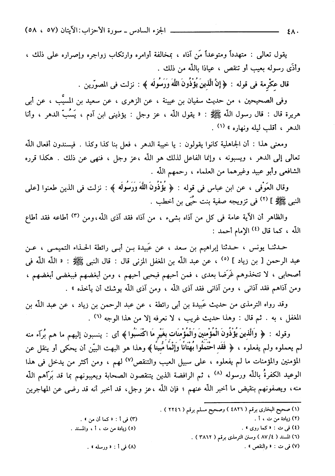 {إِنَّ الَّذِينَ يُؤْذُونَ اللَّهَ وَرَسُولَهُ لَعَنَهُمُ اللَّهُ فِي الدُّنْيَا وَالآخِرَةِ وَأَعَدَّ لَهُمْ عَذَابًا مُهِينًا (57) وَالَّذِينَ يُؤْذُونَ الْمُؤْمِنِينَ وَالْمُؤْمِنَاتِ بِغَيْرِ مَا اكْتَسَبُوا فَقَدِ احْتَمَلُوا بُهْتَانًا وَإِثْمًا مُبِينًا (58) }