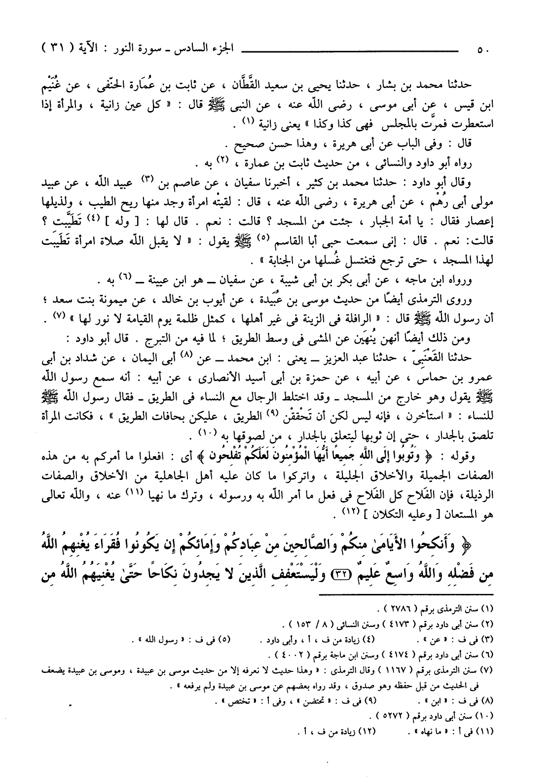 وَقَوْلُهُ: {وَتُوبُوا إِلَى اللَّهِ جَمِيعًا أَيُّهَا الْمُؤْمِنُونَ لَعَلَّكُمْ تُفْلِحُونَ} أَيْ: افْعَلُوا مَا آمُرُكُمْ بِهِ مِنْ هَذِهِ الصِّفَاتِ الْجَمِيلَةِ وَالْأَخْلَاقِ الْجَلِيلَةِ، وَاتْرُكُوا مَا كَانَ عَلَيْهِ أَهْلُ الْجَاهِلِيَّةِ مِنَ الْأَخْلَاقِ وَالصِّفَاتِ الرَّذِيلَةِ، فَإِنَّ الفَلاح كُلَّ الفَلاح فِي فِعْلِ مَا أَمَرَ اللَّهُ بِهِ وَرَسُولُهُ، وَتَرْكِ مَا نَهَيَا (11) عَنْهُ، والله تعالى هو المستعان [وعليه التكلان] (12) .