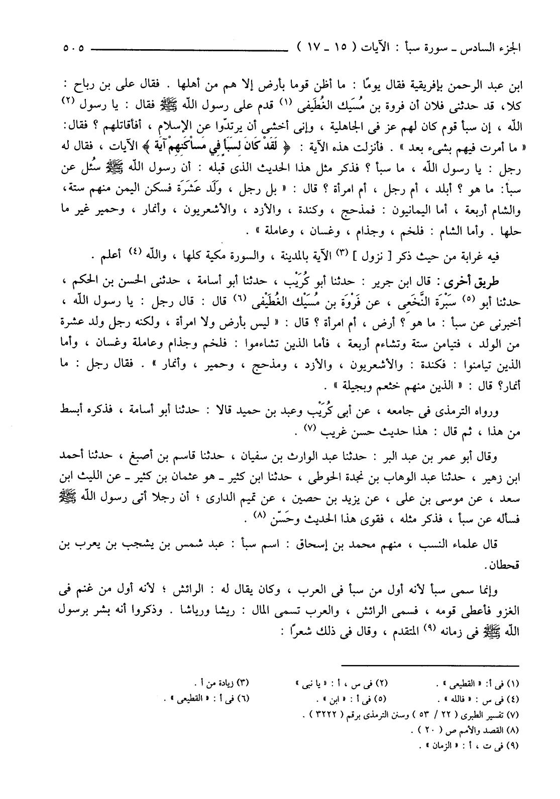 (7) تفسير الطبري (22/53) وسنن الترمذي برقم (3222) .