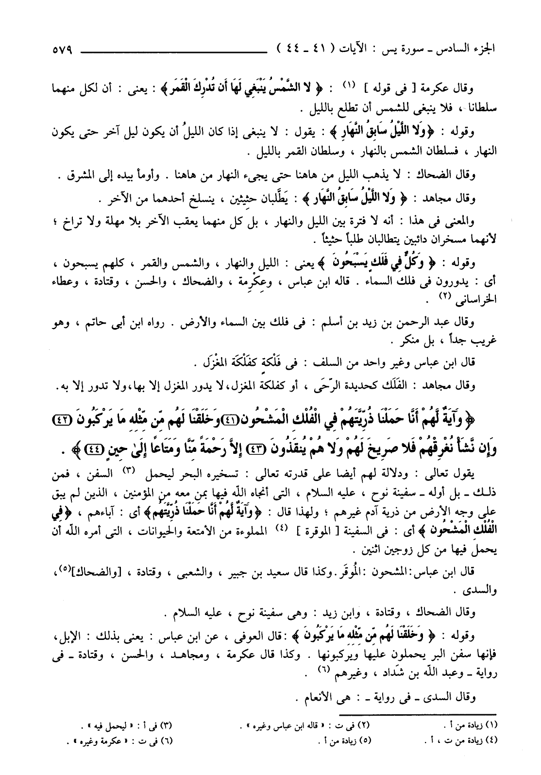 وَقَالَ عِكْرِمَةُ فِي قَوْلِهِ (1) {لَا الشَّمْسُ يَنْبَغِي لَهَا أَنْ تُدْرِكَ الْقَمَرَ} : يَعْنِي: أَنَّ لِكُلٍّ مِنْهُمَا سُلْطَانًا، فَلَا يَنْبَغِي لِلشَّمْسِ أَنْ تَطْلُعَ بِاللَّيْلِ.