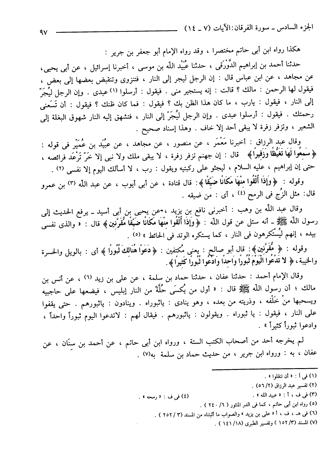 (7) المسند (3/152) وتفسير الطبري (18/141) .