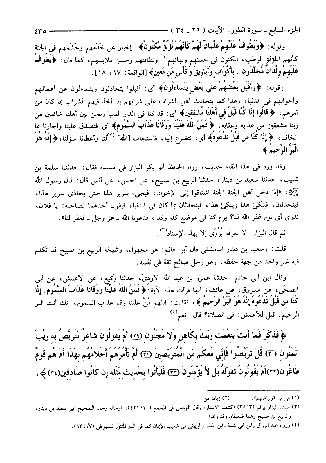 (3) مسند البزار برقم (3553) "كشف الأستار" وقال الهيثمي في المجمع (10/421) : "رجاله رجال الصحيح غير سعيد بن دينار والربيع بن صبيح وهما ضعيفان وقد وثقا".