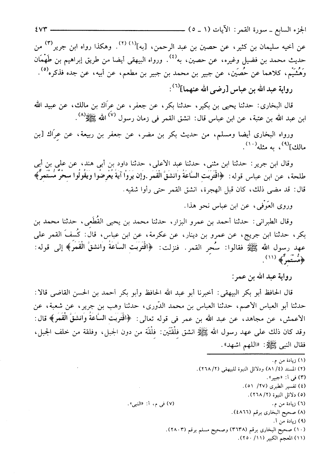 قَالَ الْبُخَارِيُّ: حَدَّثَنَا يَحْيَى بْنُ بُكَيْرٍ، حَدَّثَنَا بَكْرٌ، عَنْ جَعْفَرٍ، عَنْ عِرَاك بْنِ مَالِكٍ، عَنْ عُبَيْدِ اللَّهِ بْنِ عَبْدِ اللَّهِ بْنِ عُتْبَةَ، عَنِ ابْنِ عَبَّاسٍ قَالَ: انْشَقَّ الْقَمَرُ فِي زَمَانِ رَسُولِ (7) اللَّهِ صَلَّى اللَّهُ عَلَيْهِ وَسَلَّمَ (8) .