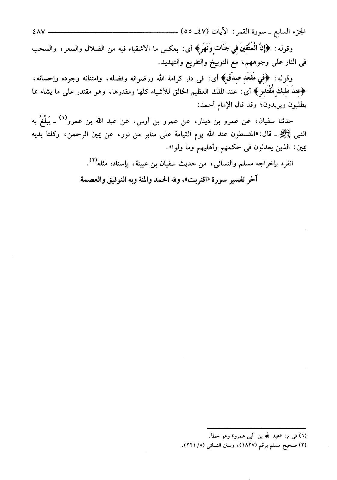 آخِرُ تَفْسِيرِ سُورَةِ "اقْتَرَبَتْ"، وَلِلَّهِ الْحَمْدُ وَالْمِنَّةُ وَبِهِ التَّوْفِيقُ وَالْعِصْمَةُ