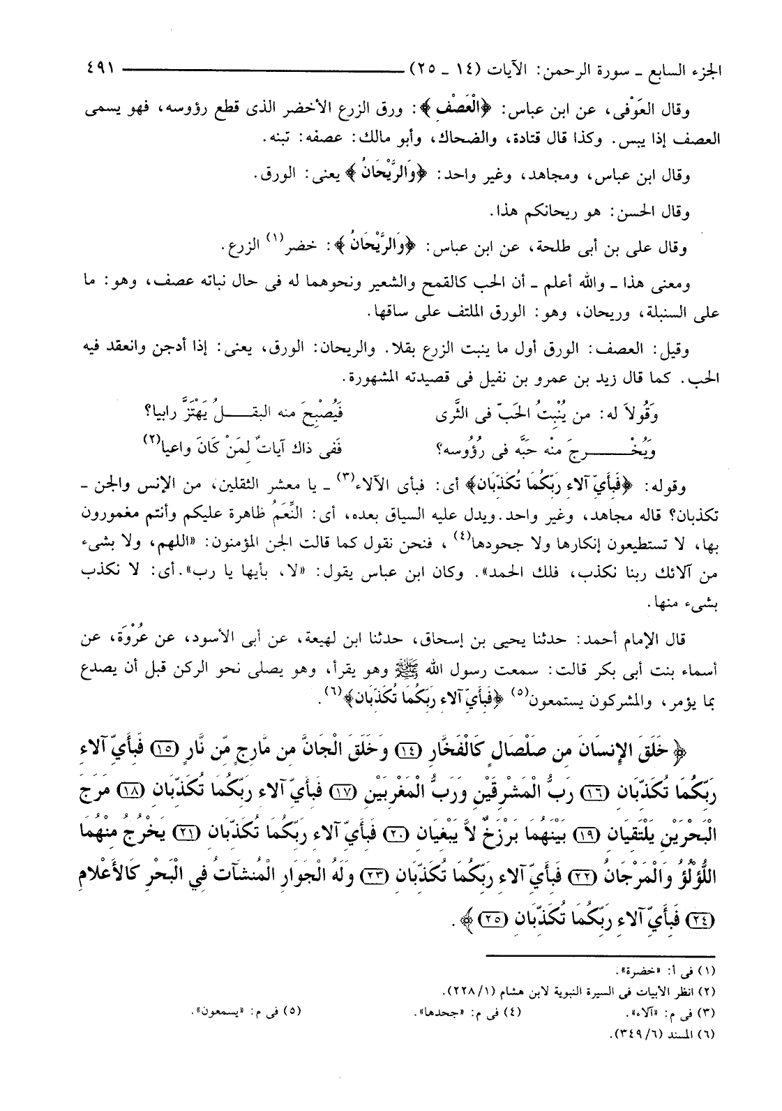 وَمَعْنَى هَذَا -وَاللَّهُ أَعْلَمُ-أَنَّ الْحَبَّ كَالْقَمْحِ وَالشَّعِيرِ وَنَحْوِهِمَا لَهُ فِي حَالِ نَبَاتِهِ عَصْفٌ، وَهُوَ: مَا عَلَى السُّنْبُلَةِ، وَرَيْحَانٌ، وَهُوَ: الْوَرَقُ الْمُلْتَفُّ عَلَى سَاقِهَا.