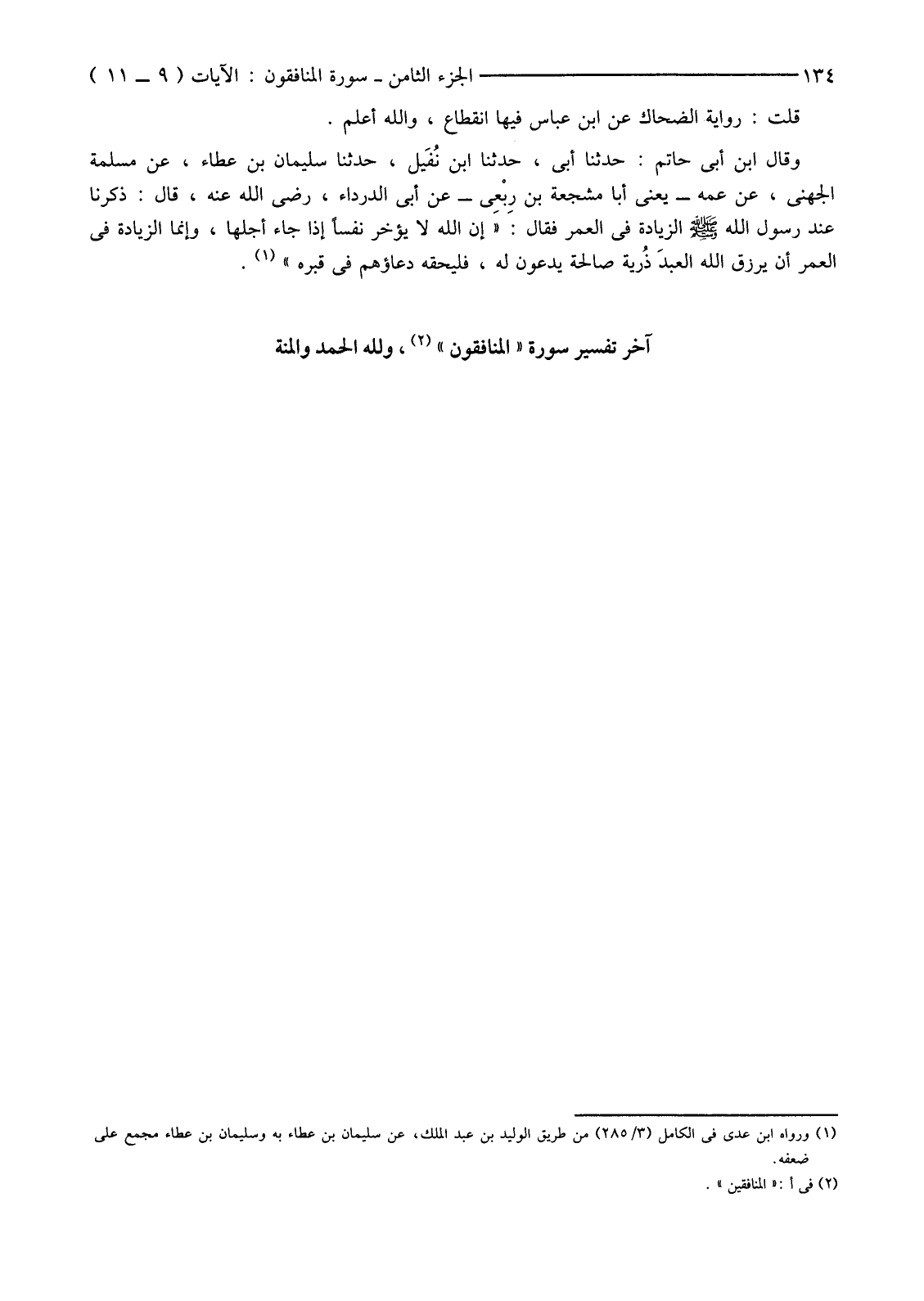 آخِرُ تفسير سورة "المنافقون" (2) ولله الحمد والمنة