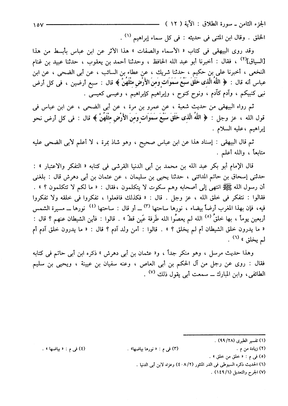 ثُمَّ رَوَاهُ الْبَيْهَقِيُّ مِنْ حَدِيثِ شُعْبَةَ عَنْ عَمْرِو بْنِ مُرَّةَ عَنْ أَبِي الضُّحَى عَنِ ابْنِ عَبَّاسٍ فِي قَوْلِ اللَّهِ عَزَّ وَجَلَّ {اللهُ الَّذِي خَلَقَ سَبْعَ سَمَاوَاتٍ وَمِنَ الأرْضِ مِثْلَهُنّ} قَالَ فِي كُلِّ أَرْضٍ نَحْوُ إِبْرَاهِيمَ عَلَيْهِ السَّلَامُ.