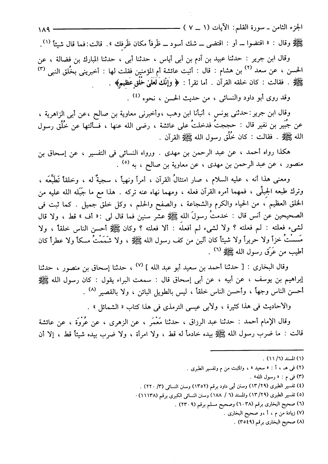 (5) تفسير الطبري (29/13) والمسند (6/188) وسنن النسائي الكبرى برقم (11138) .