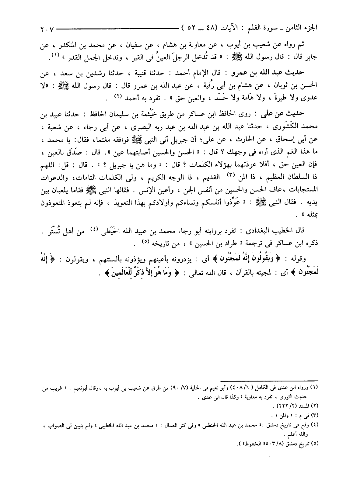 (4) وقع في تاريخ دمشق: "محمد بن عبد الله الحنظلى" وفي كنز العمال: "محمد بن عبد الله الخطيبى" ولم يتبين لى الصواب، والله أعلم.