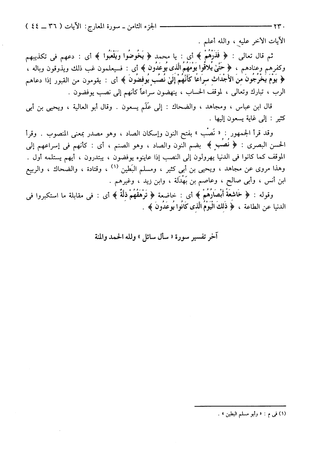 آخِرُ تَفْسِيرِ سُورَةِ "سَأَلَ سَائِلٌ" وَلِلَّهِ الْحَمْدُ والمنة.