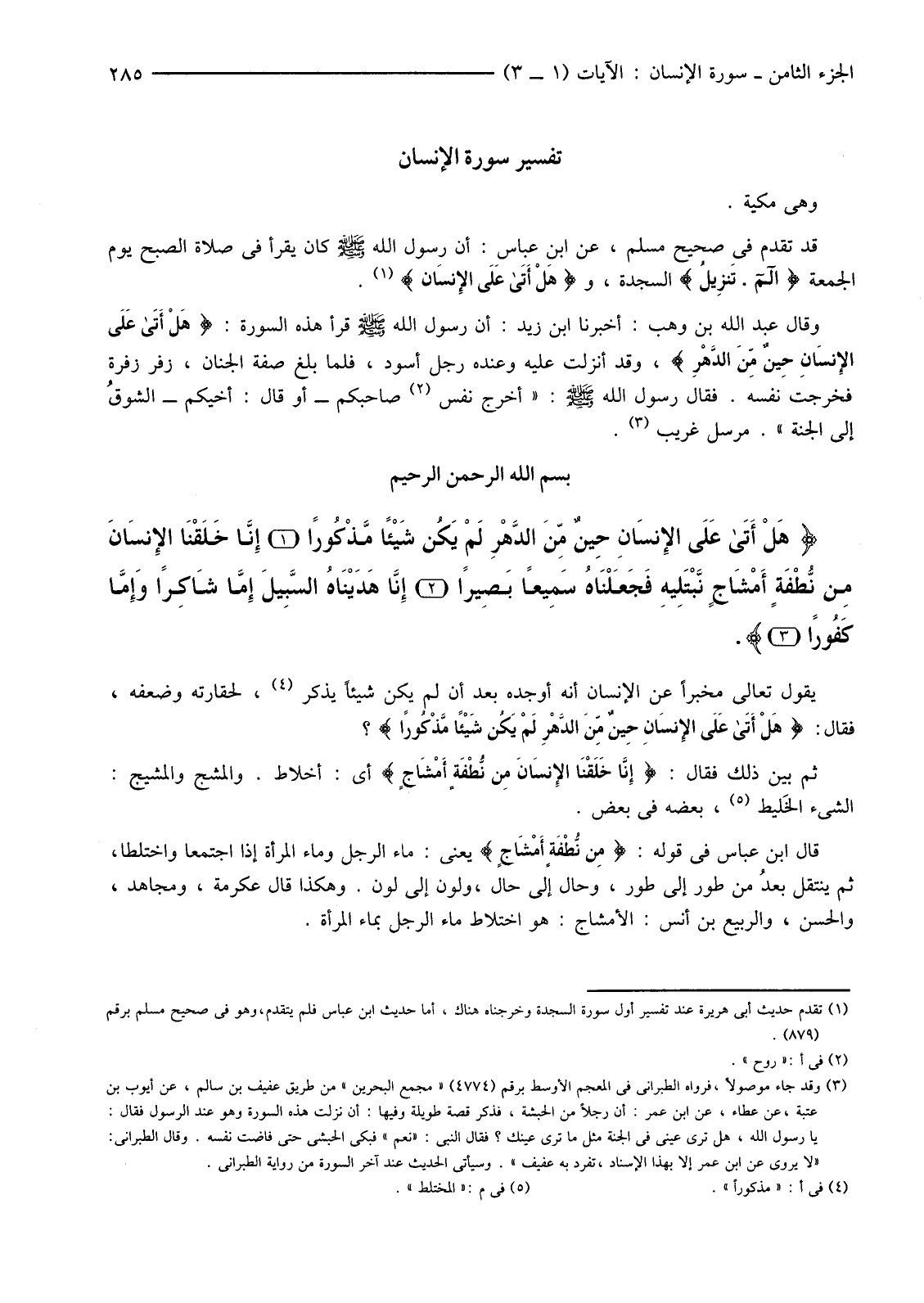 تَفْسِيرُ سُورَةِ الْإِنْسَانِ