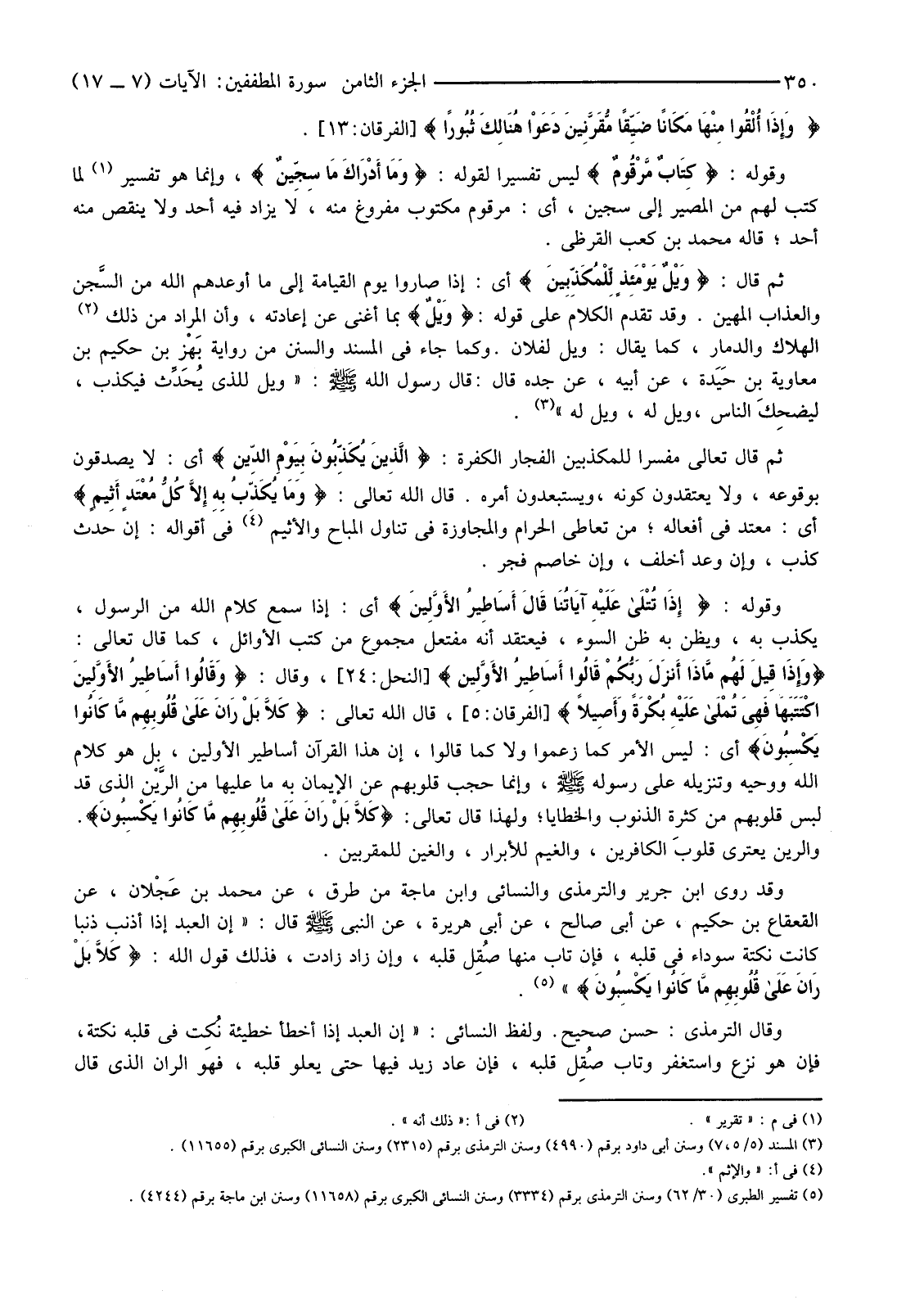 (5) تفسير الطبري (30/62) وسنن الترمذي برقم (3334) وسنن النسائي الكبرى برقم (11658) وسنن ابن ماجة برقم (4244) .