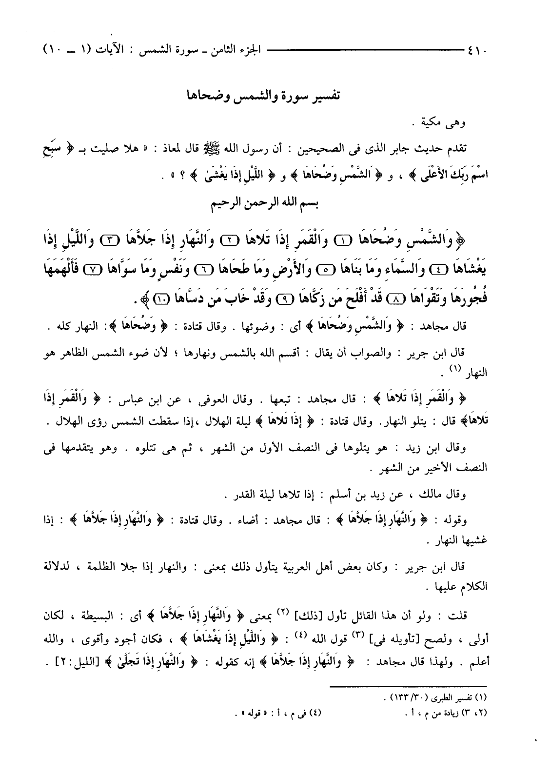 تَفْسِيرُ سُورَةِ وَالشَّمْسِ وَضُحَاهَا