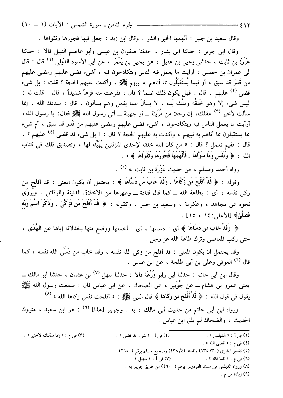 (5) تفسير الطبري (30/135) والمسند (4/438) وصحيح مسلم برقم (2650) .