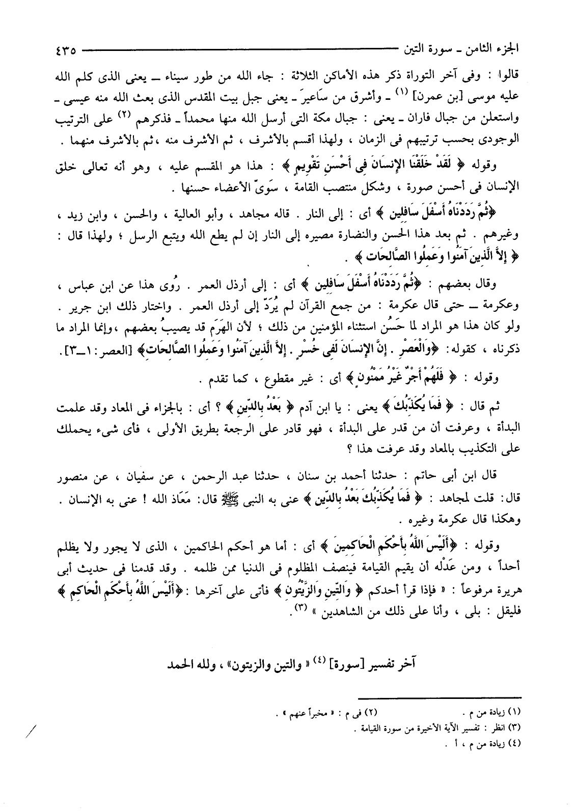 آخِرُ تَفْسِيرِ [سُورَةِ] (4) " وَالتِّينِ وَالزَّيْتُونِ " ولله الحمد.
