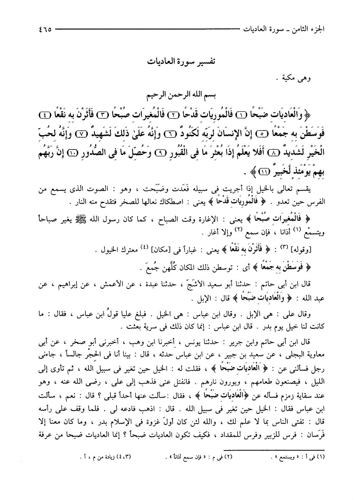 تَفْسِيرُ سُورَةِ الْعَادِيَاتِ