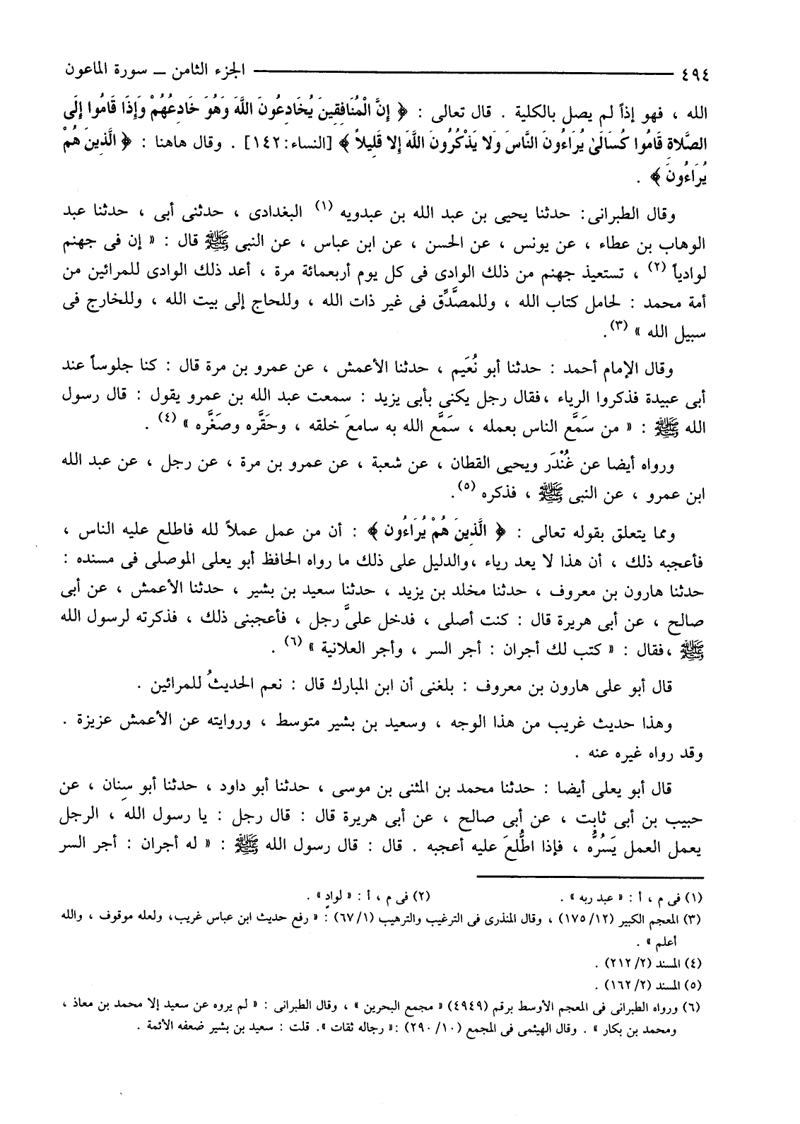اللَّهِ، فَهُوَ إِذًا لَمْ يُصَلِّ بِالْكُلِّيَّةِ. قَالَ تَعَالَى: {إِنَّ الْمُنَافِقِينَ يُخَادِعُونَ اللَّهَ وَهُوَ خَادِعُهُمْ وَإِذَا قَامُوا إِلَى الصَّلاةِ قَامُوا كُسَالَى يُرَاءُونَ النَّاسَ وَلا يَذْكُرُونَ اللَّهَ إِلا قَلِيلا} [النِّسَاءِ: 142] . وَقَالَ هَاهُنَا: {الَّذِينَ هُمْ يُرَاءُونَ}
