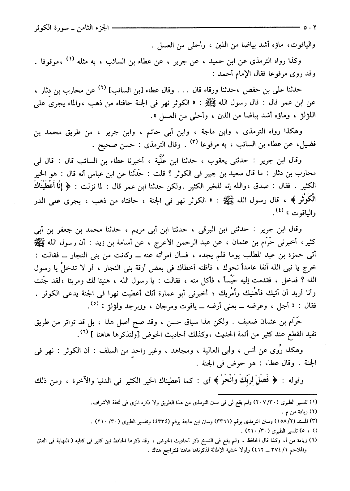 (3) المسند (2/158) وسنن الترمذي برقم (3361) وسنن ابن ماجة برقم (4334) وتفسير الطبري (30/210) .