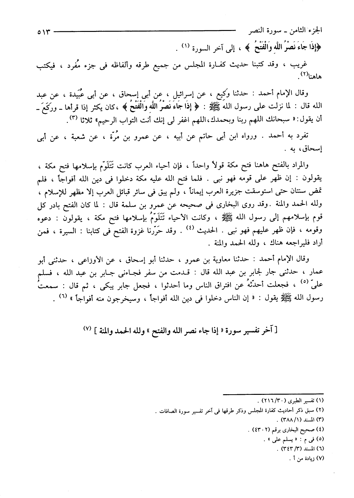 [آخِرُ تَفْسِيرِ سُورَةِ "إِذَا جَاءَ نَصْرُ اللَّهِ والفتح" ولله الحمد والمنة] (7)