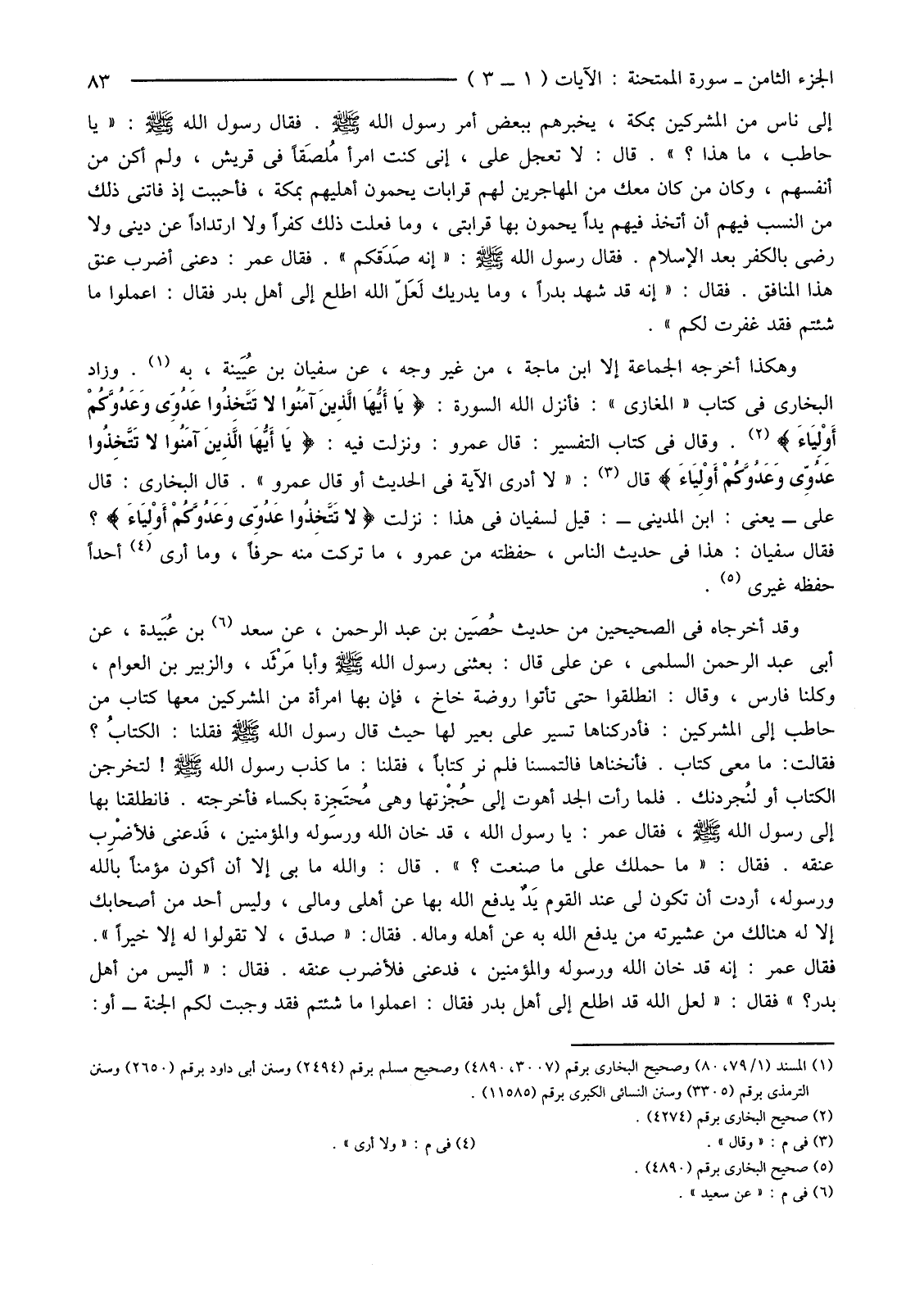 (1) المسند (1/79، 80) وصحيح البخاري برقم (3007، 4890) وصحيح مسلم برقم (2494) وسنن أبي داود برقم (2650) وسنن الترمذي برقم (3305) وسنن النسائي الكبرى برقم (11585) .