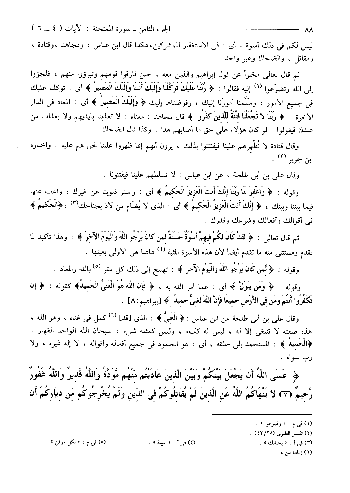 ثُمَّ قَالَ تَعَالَى: {لَقَدْ كَانَ لَكُمْ فِيهِمْ أُسْوَةٌ حَسَنَةٌ لِمَنْ كَانَ يَرْجُو اللَّهَ وَالْيَوْمَ الآخِرَ} وَهَذَا تَأْكِيدٌ لِمَا تَقَدَّمَ وَمُسْتَثْنًى مِنْهُ مَا تَقَدَّمَ أَيْضًا لِأَنَّ هذه الأسوة المثبتة (4) هاهنا هِيَ الْأُولَى بِعَيْنِهَا.
