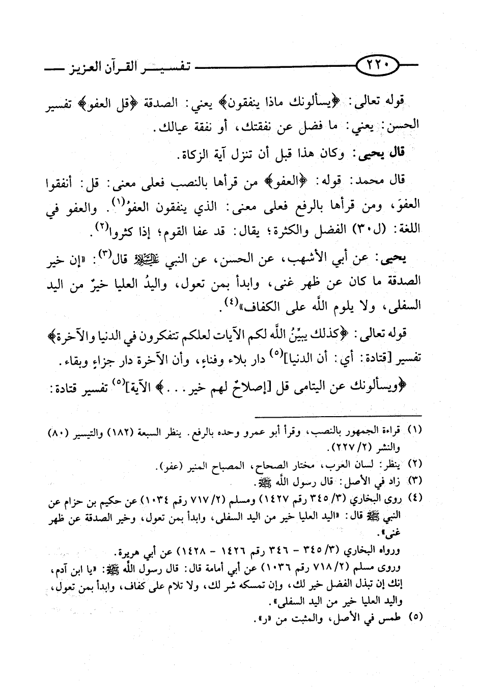 قَوْله تَعَالَى: {يَسْأَلُونَكَ مَاذَا يُنْفِقُونَ} يَعْنِي: الصَّدَقَة {قل الْعَفو} تَفْسِير الحَسَن: يَعْنِي: مَا فضل عَنْ نَفَقَتك، أَو نَفَقَة عِيَالك.