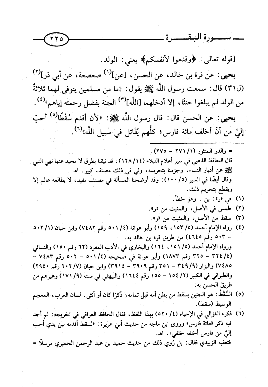 يَحْيَى: عَنِ الْحَسَنِ قَالَ: قَالَ رَسُولُ اللَّهِ صَلَّى اللَّهُ عَلَيْهِ وَسَلَّمَ: ((لأَنْ أُقَدِّمَ سُقْطًا أَحَبُّ إِلَيَّ مِنْ أَنْ أَخْلُفَ مِائَةَ فَارِسٍ؛ كُلُّهُمْ يُقَاتِلُ فِي سَبِيلِ اللَّهِ)).