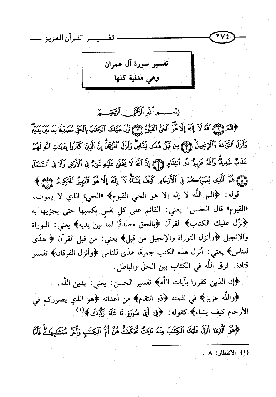 تَفْسِير سُورَة آل عمرَان وَهِي مَدَنِيَّة كلهَا