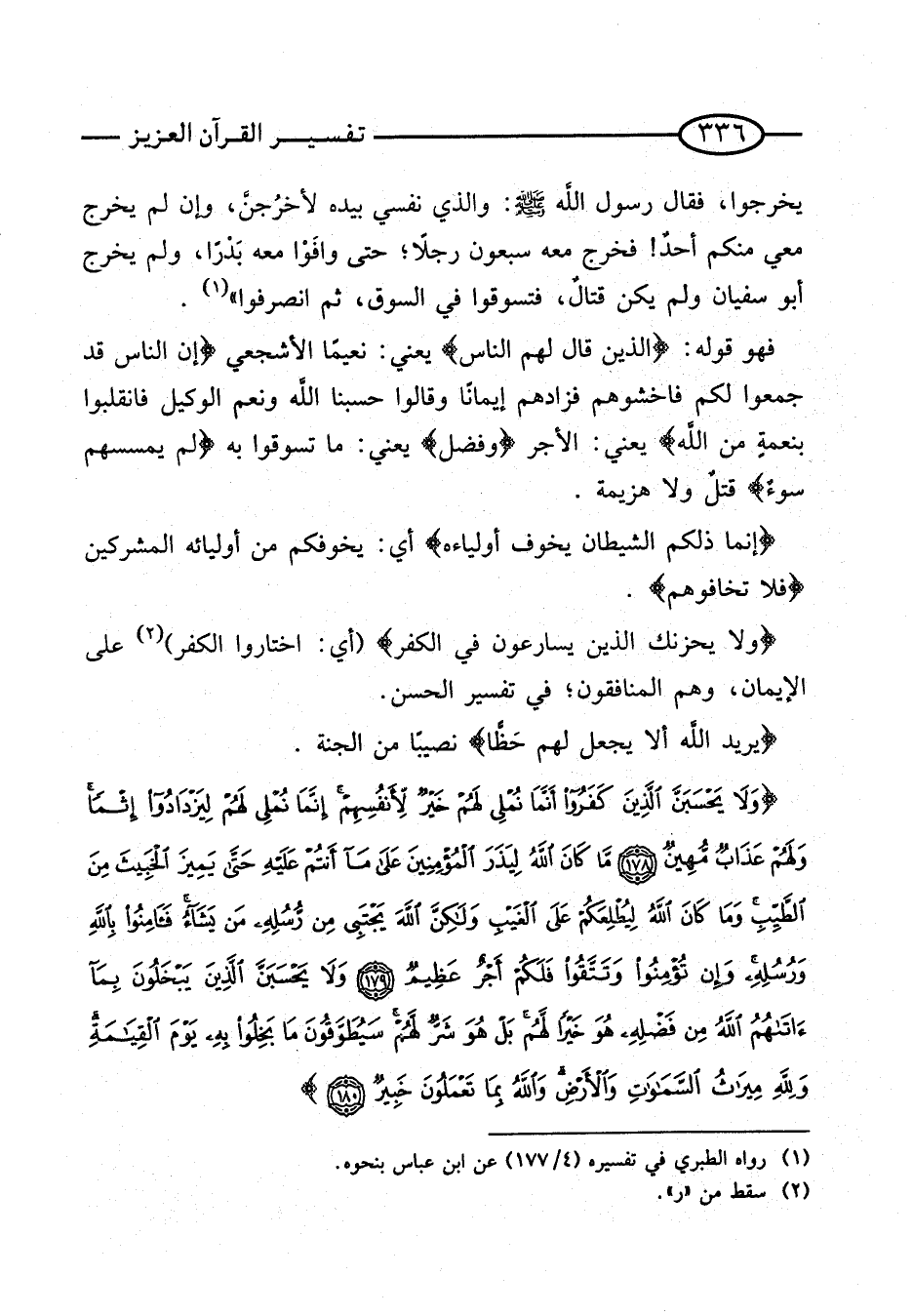 {وَلا يَحْزُنْكَ الَّذِينَ يُسَارِعُونَ فِي الْكفْر} (أَي: اخْتَارُوا الْكفْر) على الْإِيمَان، وهم المُنَافِقُونَ؛ فِي تَفْسِير الْحسن. {يُرِيدُ اللَّهُ أَلَّا يَجْعَلَ لَهُمْ حظا} نَصِيبا من الْجنَّة. [آيَة 178 - 180]