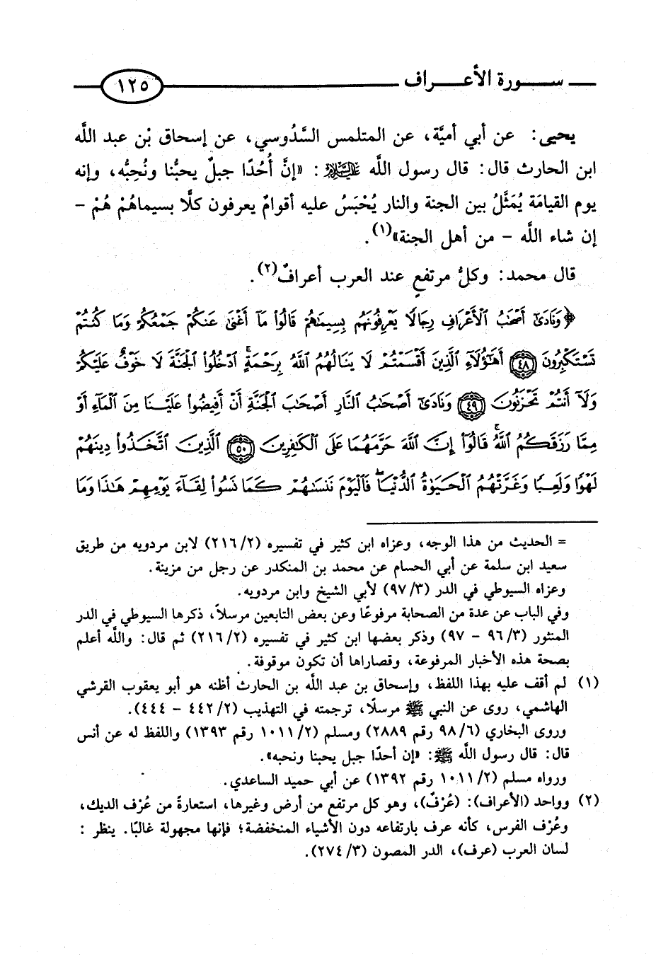 قَالَ مُحَمَّدٌ: وَكُلُّ مرتفعٍ عِنْدَ الْعَرَبِ أعرافٌ.